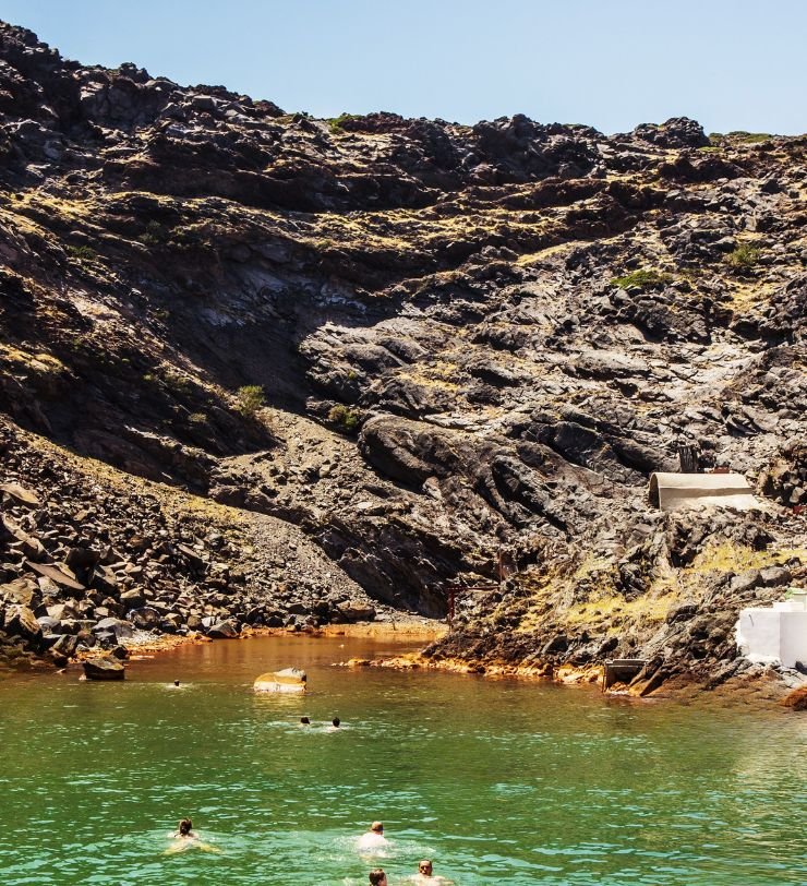 Stop at the island of Thirassia for swimming and food for approximately 30 minutes.